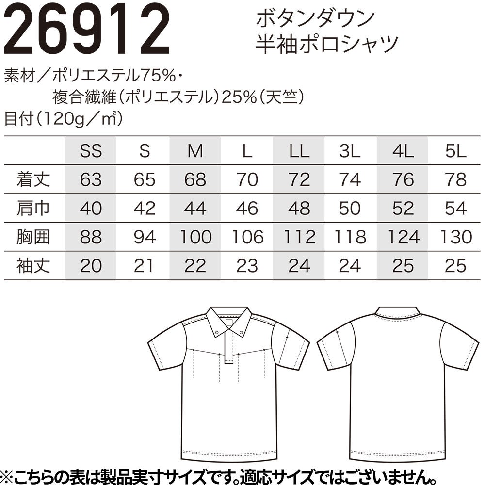 作業服 ポロシャツ 半袖 ボタンダウン半袖ポロシャツ 26912 作業着 春夏 ストレッチ 動きやすい 通気性 制電 お洒落 普段使い タウンユース アウトドア キャンプ 海水浴 釣り フィッシング ハイキング トレッキング スポーツ