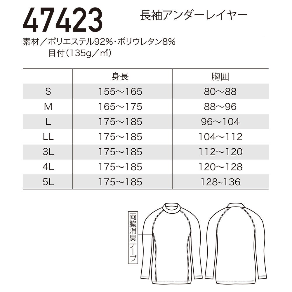 インナー 長袖 長袖アンダーレイヤー 47423 夏用 涼しい クール ストレッチ 消臭 接触冷感 動きやすい 冷たい アウトドア スポーツ コスパが良い 信頼性 猛暑 酷暑 熱中症対策 日焼け止め