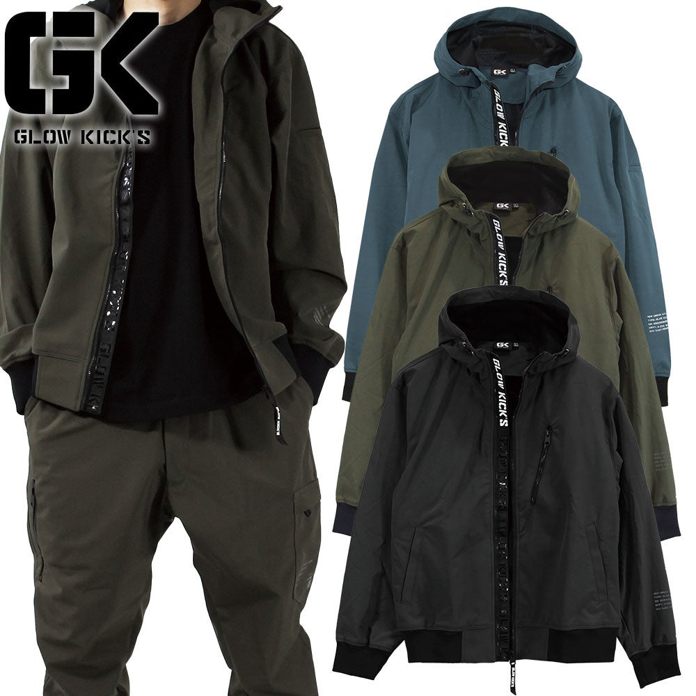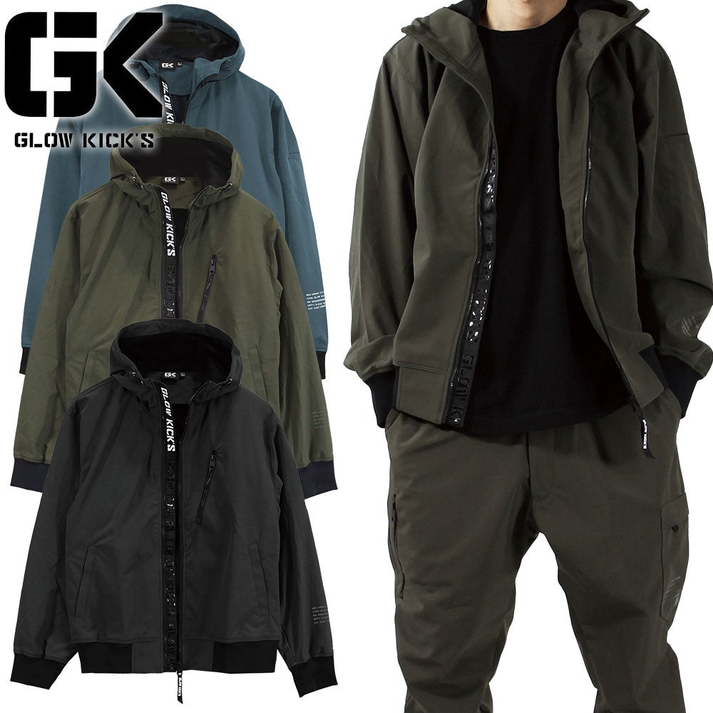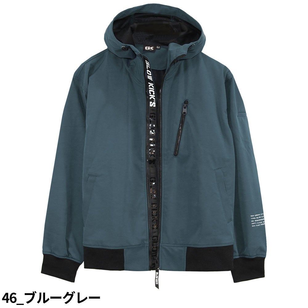 作業服 ジャンパー ケイゾック K-ZOC GK(GLOWKICK'S)裏ベロア防風ボンディングパーカー GKK-8010 作業着 通年 秋冬グローキックス フーディ ストレッチ カジュアル タウンユース 普段着 アウトドア スポーツ キャンプ バーベキュー 登山 トレッキング ボルタリング サイクリング 自転車 ボード ダンス