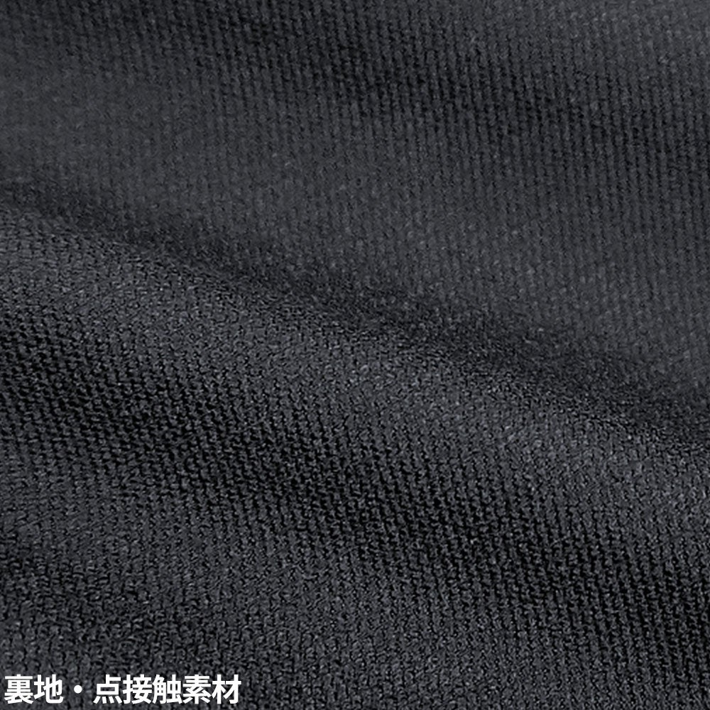 柔らかで肌ざわりの良いベロアが暖かい空気を含み防寒性を高める効果ラミネートフィルムを挟んだ3層ボンディング生地で冷たい風を遮断生地は撥水加工で雨風をガードしストレッチ性もあり動きやすさも抜群