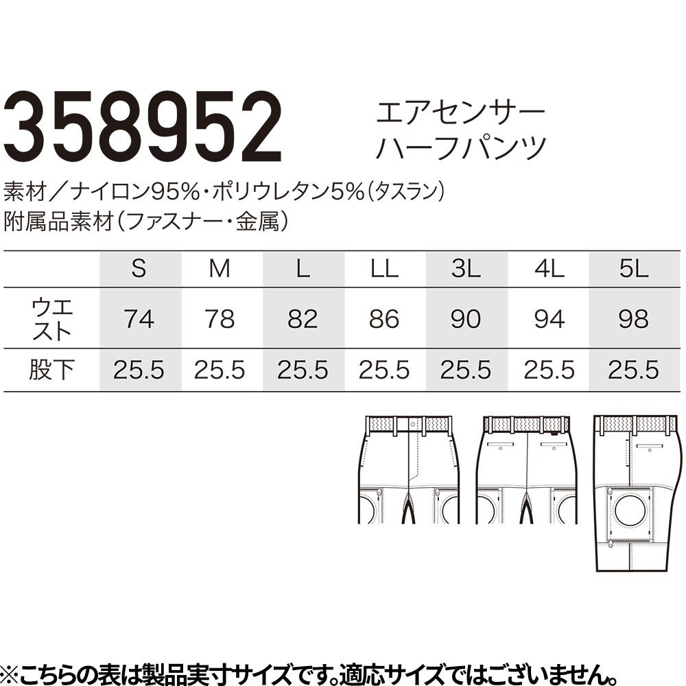 EFウェア ハーフパンツ AIR SENSOR-1 エアセンサーハーフパンツ(ファン無し) 2026年モデル 358952 作業着 作業服 春夏 電動ファン 扇風機 現場 建設 建築 土木 工事 農作業 林業 奉仕作業 草刈り イベント アウトドア 動きやすい コスパが良い 信頼性 猛暑 酷暑 暑さ 熱中症対策