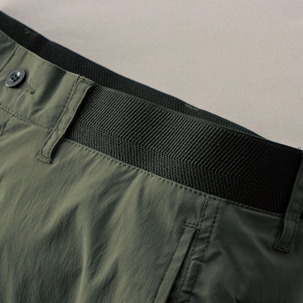 身体の動きに合わせて上下左右に自在に伸縮する裾ジョガー仕立ての2WAYストレッチカーゴパンツ
