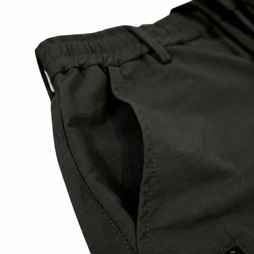 細かなギミックを随所に施した「FUBER ユーティリティーシリーズ」。マットな色合いで耐久性と軽量性を両立したタスランナイロンを使用。 膝上丈のユーティリティーショートパンツ。右サイドには落下防止と座った時に邪魔にならないボタン付きのスマホ用ポケットを搭載。ウエストにはカラビナやキーを吊れるミニループ付き。