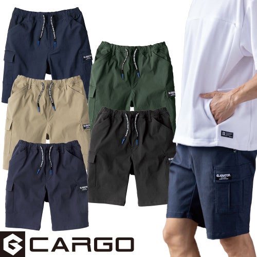 作業服 ハーフパンツ コーコス信岡 CO-COS 冷感ストレッチライトショートカーゴ G-2016 作業着 春夏 ウエストドローコード ウエストゴム カジュアル アウトドア タウンユース