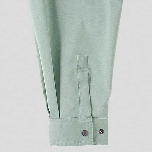 ソフトな国産裏綿素材に防汚加工を施し、優れた撥水・撥油機能を持つワークウェア! 1.耐久と防汚性を高めた二重織構造の裏綿ストレッチツイル素材2.環境への負荷が少ないグリーン購入法判断基準対応品3.脇ゴム(シャーリング)仕様でゆったりシルエット4.高品質の日本製素材