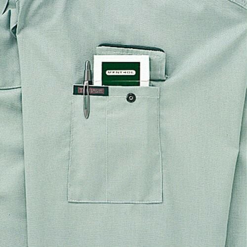 ソフトな国産裏綿素材に防汚加工を施し、優れた撥水・撥油機能を持つワークウェア! 1.耐久性と防汚性を高めた二重織構造の裏綿ストレッチツイル素材2.環境への負荷が少ないグリーン購入法判断基準対応品3.左右の胸ポケットはたっぷり収納ダブルポケット仕様4.高品質の日本製素材