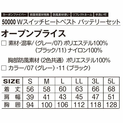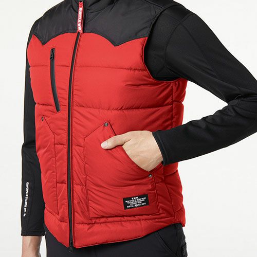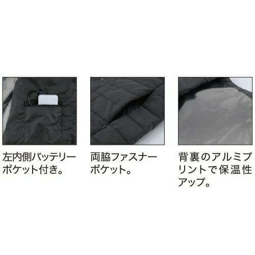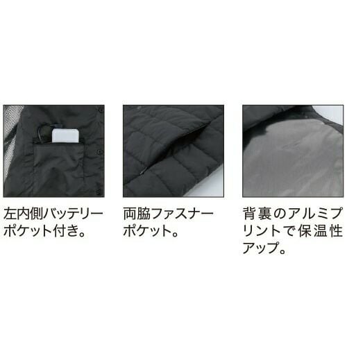 他の画像を見る 電熱ウェア コーコス信岡 CO-COS VOLT HEAT ボルトヒート 2WAYベスト【バッテリー別売】 G-8099 作業着 作業服 防寒 制電 防風 抗菌 光吸収発熱 マイクロカーボンファイバー 暖かい 人気 定番 おしゃれ カッコいい シンプル インナー チョッキ 作業 工場 外作業 仕事 土木 工事 現場 特別価格 ¥ 4,480 税込 〜 特別価格 ¥ 税込 電熱機能(マイクロカーボンファイバーの電動ヒーター機能)・光吸収発熱(光を熱に変換する機能性素材 アルティメットカーボ)・防風プラスの暖かさMAXウェア 着ているだけで最大+8℃の光吸収発熱素材とマイクロカーボンファイバーの電熱素材で電源OFFでも暖かさをキープ電源ONでさらに暖かさをアシスト光沢を抑えた上品なナイロン素材、衿元2WAYとスマートな見た目がオフィスにもマッチ 詳細を見る お気に入りに登録する