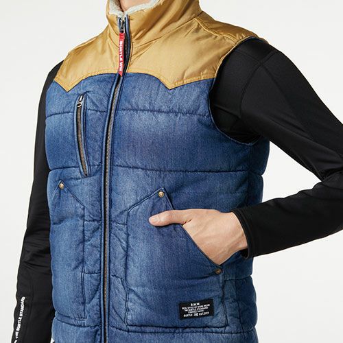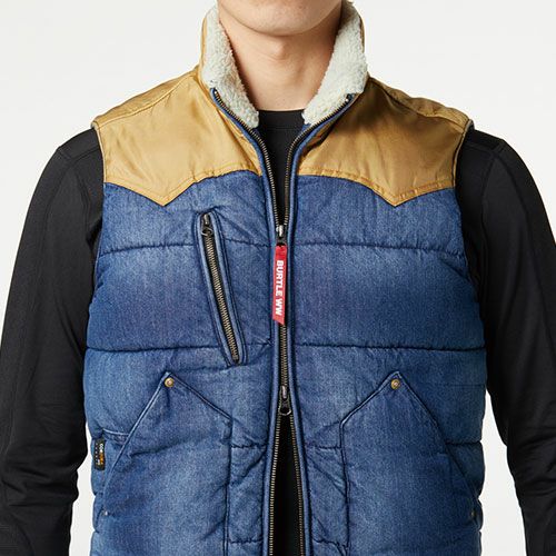 他の画像を見る 電熱ウェア バートル BURTLE サーモクラフト 防寒デニムベスト【電熱パッド・バッテリー別売】 5004 作業着 作業服 防寒 ヒーター 暖かい 男女共用 スポーツ アウトドア タウンユース 冬キャンプ トレッキング 釣り ウインタースポーツ 特別価格 ¥ 5,687 税込 〜 特別価格 ¥ 税込 ストリートカジュアルなムードをプラスしたヴィンテージテイストのワークデニム防寒 ・サーモクラフト(電熱パッド)装着対応モデル・ナチュラルなフェードがクラシックヴィンテージな表情を演出・ウエスタンヨークに高強度コーデュラナイロンを採用・フロントには上下開閉出来るダブルジップファスナーを配備・一般家庭洗濯に対応したウォッシャブル仕様によりイージーケアを実現・スタンド衿廻りに温もり感たっぷりなシープボアを採用・男女ユニセックスに対応したすっきりとしたスマートなシルエット 詳細を見る お気に入りに登録する
