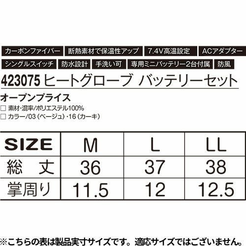 他の画像を見る 電熱ウェア アタックベース ATACK BASE ヒートグローブ【バッテリーセット】 423075 作業着 作業服 防寒 発熱ユニット 発熱体 ヒーター バッテリー付属 ヒートウェア 即暖 暖かい ストレッチ アウトドア スポーツ ゴルフ 釣り キャンプ バイク 通勤 通学 警備 交通整理 特別価格 ¥ 7,835 税込 即暖効果 熱線部分は20秒でぽっかぽか 詳細を見る お気に入りに登録する