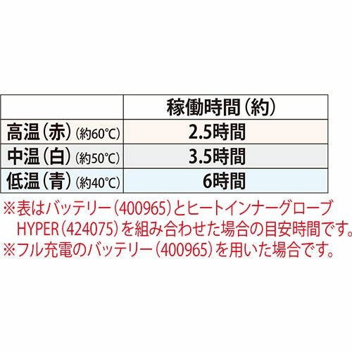 他の画像を見る 電熱ウェア アタックベース ATACK BASE ヒートインナーグローブHYPER【バッテリーセット】 424075 作業着 作業服 防寒 発熱ユニット 発熱体 ヒーター バッテリー付属 ヒートウェア 即暖 暖かい ストレッチ アウトドア スポーツ ゴルフ 釣り キャンプ バイク 通勤 通学 警備 交通整理 特別価格 ¥ 9,493 税込 即暖効果 シート状ヒーターがスピード発熱 詳細を見る お気に入りに登録する
