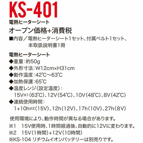他の画像を見る 電熱ウェア クロダルマ 電熱ヒーターユニット KS-401 作業着 作業服 防寒 ヒーターシート ヒーターパッド 特別価格 ¥ 1,991 税込 ハンガールーフ(衿吊り)に付属ベルトを装着し内ポケットにバッテリーを入れて使用可能作業環境に応じて4段階の温度調整が可能な電熱ヒーターシート新登場!! カートに入れる お気に入りに登録する
