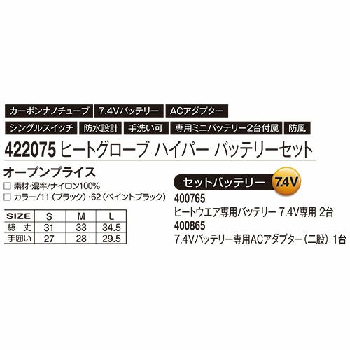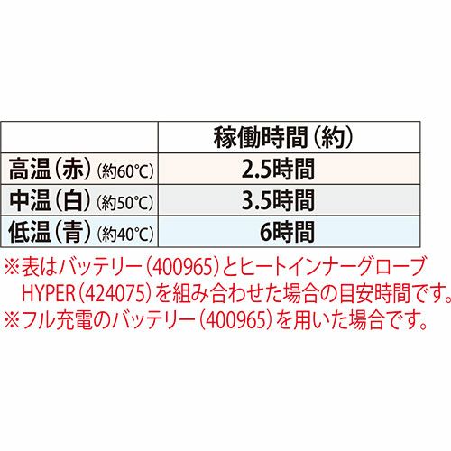 他の画像を見る 電熱ウェア アタックベース ATACK BASE ヒートグローブハイパー(バッテリーセット) 422075 作業着 作業服 防寒ヒートウェア 作業服 特別価格 ¥ 9,625 税込 高機能カーボンナノチューブを採用! ■最大9時間稼働■均等に熱が広がり一定の暖かさを実現■断念の心配無く水に強いフィルムヒーターシート採用 詳細を見る お気に入りに登録する