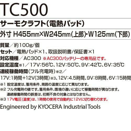 他の画像を見る 電熱ウェア バートル BURTLE サーモクラフト(電熱パッド)【バッテリー別売】 TC500 作業着 作業服 防寒 ヒーター 暖かい 男女共用 スポーツ アウトドア タウンユース 冬キャンプ トレッキング 釣り ウインタースポーツ メーカー希望小売価格 ¥ 13,200 特別価格 ¥ 6,210 税込 専用ウェアに装着して、ヒートテクノロジーサーモクラフト。 ・4段階で好みの温度に調節でき快適な保温持続性を実現・専用ウェア、専用バッテリーは別売りとなります カートに入れる お気に入りに登録する