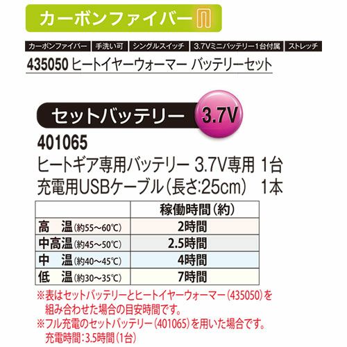 他の画像を見る 電熱ウェア アタックベース ATACK BASE ヒートイヤーウォーマー 435050 作業着 作業服 防寒 カーボンファイバー イヤーウォマー イヤーマフラー 発熱 熱伝導 暖かい アウトドア スポーツ 登山 キャンプ トレッキング ゴルフ 釣り フィッシング 通勤 通学 バイク 自転車 特別価格 ¥ 4,270 税込 暖かくて嵩張らない安定安心品質のバリエーションモデル 線状発熱体「カーボンファイバー」採用・着用シーンを選ばない・豊富なラインナップ・繰り返し使える カートに入れる お気に入りに登録する