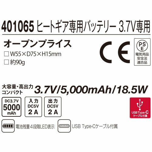 他の画像を見る 電熱ウェアバッテリー アタックベース ATACK BASE ヒートギア専用バッテリー 401065 作業着 作業服 防寒 特別価格 ¥ 1,860 税込 カートに入れる お気に入りに登録する