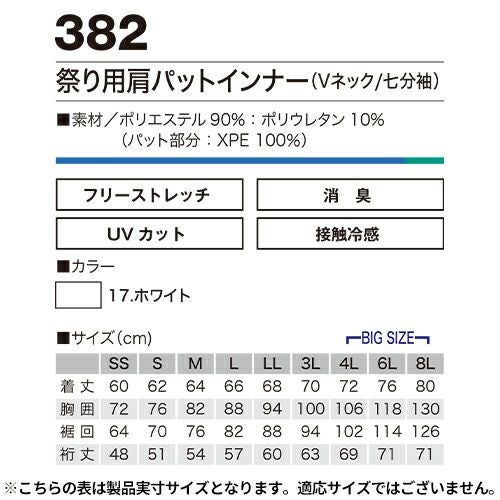 他の画像を見る お祭り用品 インナー 祭り お神輿用 白 七分袖 祭り用肩パット入りVネック七分袖インナー 無地 シンプル ストレッチ 消臭 冷感 村上被服 鳳皇 HOOH お祭り 夏祭り 児童会 花火大会 衣装 縁日 出店 おみこし 粋 和 382 作業服 通年 特別価格 ¥ 2,980 税込 〜 特別価格 ¥ 税込 高反発の立体3D肩パッドで神輿を担ぐ際の方への負担を軽減 お神輿で強い負荷がかかる肩を守る!しっかりしたクッションが付いているお神輿に特化したインナー。フリーストレッチで着心地快適。さらにUVカットで紫外線を防ぎ、消臭、接触冷感でイヤな汗臭や不快感を顕現してくれます。 夏祭りなどイベントに最適。 詳細を見る お気に入りに登録する