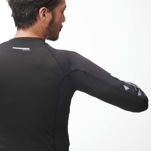 他の画像を見る 作業着 インナー 長袖 メンズ HUMMER ハマー 長袖コンプレッション コンプレッションインナー 消臭 速乾 ストレッチ ペン差し ペンポケット かっこいい 汗 大きいサイズ 特別価格 ¥ 2,673 税込 負荷のかかる肩部分に軽量で弾力性のある異素材を取り入れることで強化 大小様々なHUMMERロゴをデザインに取り入れた近未来の雰囲気漂うアンシンメトリーデザイン軽量で弾力性のある肉厚ニット素材を肩部に配したハイブリッドコンプレッション 詳細を見る お気に入りに登録する