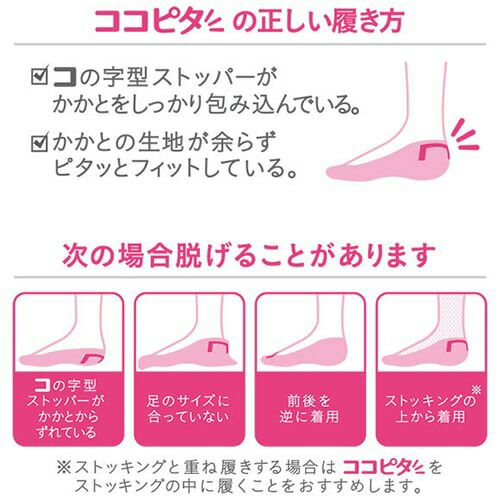 他の画像を見る ゆうパケット対応6足まで CMで話題沸騰! 女性用 ココピタ レディース靴下 脱げないココピタ カットソータイプ(浅履き) パンプス用 フットカバー 浅め 靴から見えない コの字 滑り止め付き 23-25cm 岡本 okamoto 特別価格 ¥ 440 税込 ◆独自開発の「コの字型ストッパー」を採用することで、脱げにくい「浅履きタイプ」のショートソックス! ◆ストッパーは、「カカト」と「つま先」の2カ所に配置、「脱げない」を実現!◆履き口の縫い目をなくし、心地よいフィット感とストレッチ性を実現!足との一体感を感じられます。◆足底面は爽やかなコットン素材を採用。汗をかきやすい季節でも快適です。◆足の動きと生地の伸縮を研究し、かかとをしっかりホールドし、脱げにくい構造を実現しました。 在庫切れ 詳細を見る お気に入りに登録する