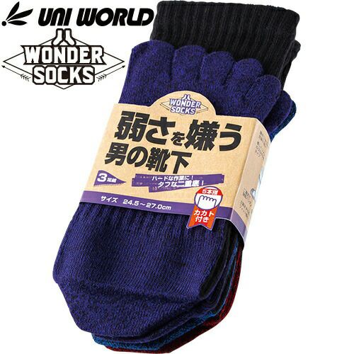 他の画像を見る 靴下 ユニワールド 弱さを嫌う男の靴下 ブラック×カラー 指付3足組 WS-272 ソックスソックス 靴下 特別価格 ¥ 800 税込 今までに無かった"驚くべき"進化を遂げた作業用靴下日々のストレスから開放する"こだわり"が光る男の靴下です 靴下の破れが多い人につま先からカカトまで補強糸で強度アップ二重底仕様のしっかりとした作りで、長く履き続けられる靴下 カートに入れる お気に入りに登録する