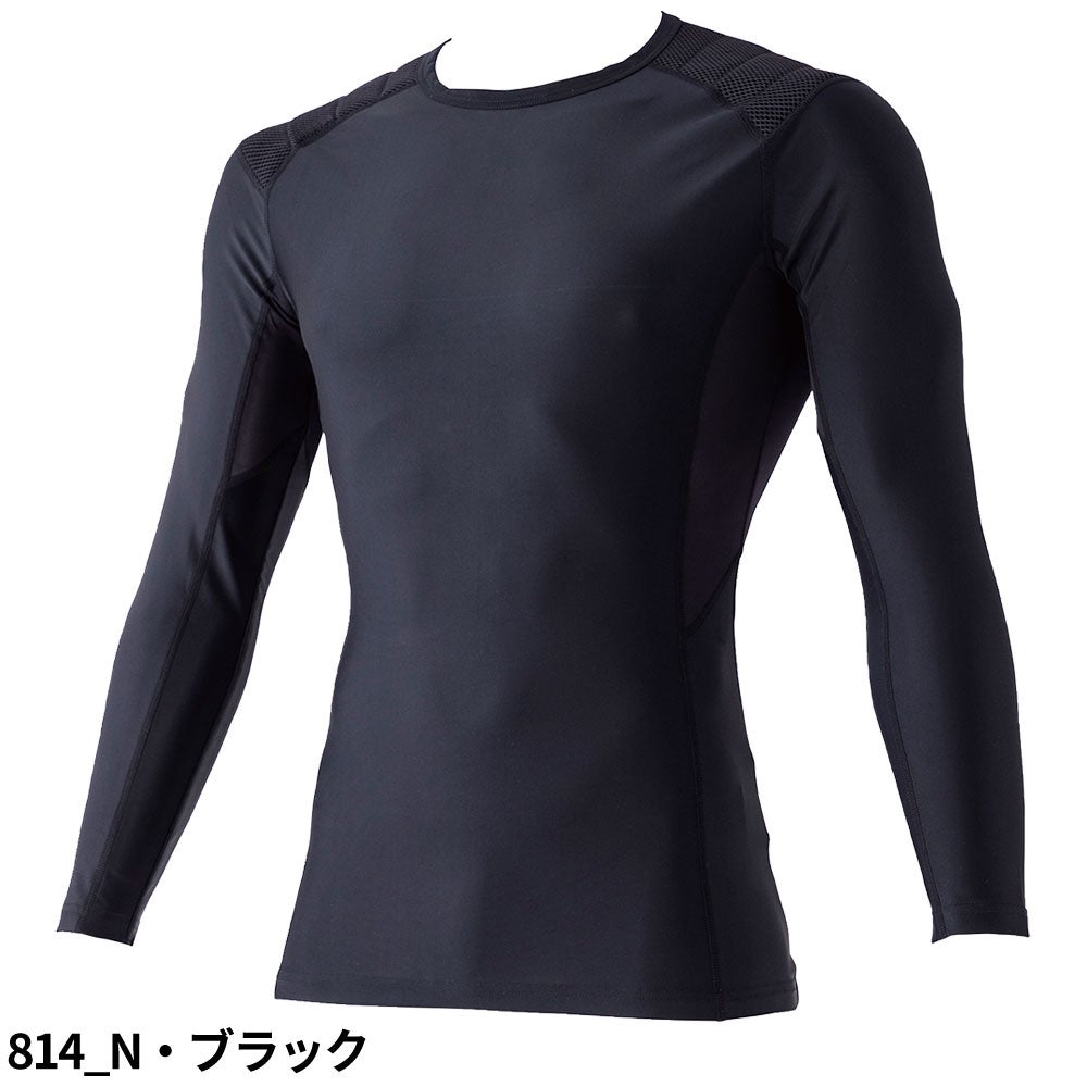 肩パッド付きパワーサポートコンプレッション長袖。冷感×消臭×ストレッチで過酷な現場を制する。