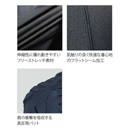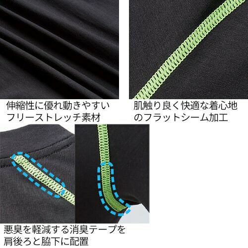 他の画像を見る [黒在庫あり][即日発送]バートル エアーフィット 4070 メンズ インナー 長袖 冷感 ストレッチ 消臭 UVカット 日焼け対策 吸汗速乾 涼しい 夏 コンプレッション インナーウェア 着圧 作業着 下着 BURTLE 2025春夏新作 アンダーシャツ かっこいい 人気 レディース 男女兼用 メール便 特別価格 ¥ 1,240 税込 汗ばむワークシーンに欠かせない軽さ(エアーフィット)とドライな着用感が快適に持続するクールコンプレッションウェア ・軽くて通気性に優れる極細ゲージのクールストレッチ機能素材(AIR FIT)・紫外線から肌を守るUVカット機能(UPF45)で日焼けを防ぐ・ドライなさらさらとした着用感が持続する吸汗速乾加工・アクティブな動きへ対応する摩耗レスなフラットロック縫製で縫い目が目立たず肌に馴染みやすい・脇部には通気性を確保するメッシュ構造・汗臭などの不快なニオイを抑える消臭テープを装着・男女どちらでもユニセックスに程よくフィットする快適な着用感 詳細を見る お気に入りに登録する