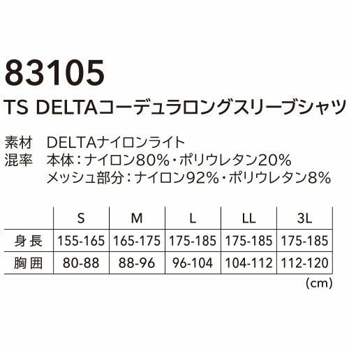 他の画像を見る インナー 長袖 藤和 TS Design TSDELTAコーデュラロングスリーブシャツ 83105 夏用 涼しい クール 軽量 ストレッチ 接触冷感 UVカット メッシュ 特別価格 ¥ 3,070 税込 〜 特別価格 ¥ 税込 TSDESIGN独自開発素材DELTAナイロンライト薄手コーデュラナイロン糸によるしなやかさと強度を併せ持つ ・薄手ながらコーデュラナイロン糸による強度と接触冷感性、しなやかさが特徴の夏インナー・背中と脇メッシュにより通気性と清涼感がある・UVカット率約98%・マルチスリーブポケット付 詳細を見る お気に入りに登録する