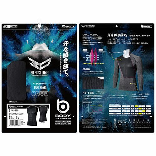 他の画像を見る インナー ノースリーブ おたふく手袋 冷感3Dファーストレイヤー ノースリーブ ラウンドネックシャツ JW-713 夏用 涼しい クール メッシュ 接触冷感 吸汗速乾 消臭 通気 ストレッチ 特別価格 ¥ 1,518 税込 汗を解き放て!1秒吸汗ファーストレイヤー新開発のポリエチレン+ポリエステルの2層構造素材デュアルファブリックPLUS搭載汗のべたつきを軽減するだけでなく、接触冷感機能を兼ね備え快適な着心地を保つ ■DUAL FABRIC PLUS吸汗・速乾・通気性に優れた異素材の組合せによる2層構造の3Dメッシュ生地が高い吸汗性と速乾性、通気性を発揮汗を瞬時に肌面から外側へ移動させ、いやなべたつきを軽減します。さらに、肌面に冷感素材を使用していますので快適に着用できます。■スピード消臭臭いの気になる首まわりと脇部分に消臭コアーミシン糸スイトールCを使用しております。■3D構造大きめのメッシュ編みの3D構造です。 詳細を見る お気に入りに登録する