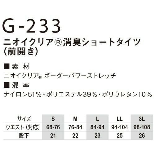 他の画像を見る コーコス信岡 CO-COS ニオイクリア 接触冷感 全面消臭ショートタイツ インナー スパッツ G-233 短め 夏用 涼しい 暑さ対策 2020年春夏新作 前開 UVカット 吸汗速乾 コンプレッション GLADIATOR グラディエーター メンズ 特別価格 ¥ 2,519 税込 夏の嫌なニオイが気になるすべての人に着てもらいたい!安心の日本品質!汗臭・加齢臭対策、最強のマストアイテム!!ハードワーク、軽作業やスポーツにも! ■接触冷感性のある素材を使用することで、ヒンヤリとした着用感を実現。■UVカット94.9%!紫外線による日焼けから肌をガード。■消臭効果は半永久的に持続!消臭能力を復活させる裏技「酢戻し」!!水1Lにお酢小さじ2を混ぜます。3~5分浸せば消臭力が戻ります。■汗臭・加齢臭を徹底分解消臭ニオイの原因は大きく分けて(アンモニア・酢酸・イソ吉草酸・ノネナール)の4大悪臭。ニオイクリアEXを着用すると...2時間後劇的な変化が!悪臭1.アンモニア(特有の強い刺激臭):92%減少!悪臭2.酢酸(強い酸味と刺激臭):95%減少!悪臭3.イソ吉草酸(汗、足のニオイ):99%減少!悪臭4.ノネナール(加齢臭の原因):90%減少! 詳細を見る お気に入りに登録する