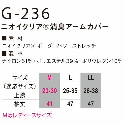他の画像を見る コーコス信岡 CO-COS ニオイクリア 接触冷感 全面消臭アームカバー 左右1セット 日焼け対策 G-236 夏用 涼しい 暑さ対策 UV ストレッチ UVカット 吸汗速乾ドライ コンプレッション GLADIATOR グラディエーター ユニセックス メンズ レディース 特別価格 ¥ 1,606 税込 夏の嫌なニオイが気になるすべての人に着てもらいたい!安心の日本品質!汗臭・加齢臭対策、最強のマストアイテム!!ハードワーク、軽作業やスポーツにも! ■接触冷感性のある素材を使用することで、ヒンヤリとした着用感を実現。■UVカット94.9%!紫外線による日焼けから肌をガード。■消臭効果は半永久的に持続!消臭能力を復活させる裏技「酢戻し」!!水1Lにお酢小さじ2を混ぜます。3~5分浸せば消臭力が戻ります。■汗臭・加齢臭を徹底分解消臭ニオイの原因は大きく分けて(アンモニア・酢酸・イソ吉草酸・ノネナール)の4大悪臭。ニオイクリアEXを着用すると...2時間後劇的な変化が!悪臭1.アンモニア(特有の強い刺激臭):92%減少!悪臭2.酢酸(強い酸味と刺激臭):95%減少!悪臭3.イソ吉草酸(汗、足のニオイ):99%減少!悪臭4.ノネナール(加齢臭の原因):90%減少! 詳細を見る お気に入りに登録する
