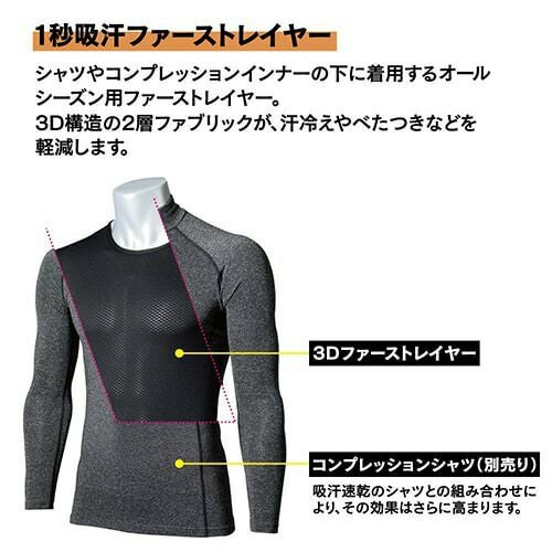 他の画像を見る 防寒 インナー メンズ 長袖 インナーシャツ ジードラゴン 吸湿発熱 吸汗速乾 消臭 メンズ レディース 男女兼用 自重堂 半永久消臭 ハイネックコンプレッション ロングスリーブ 防寒着 防寒服 作業着 作業服 冬用 暖かい 78124 特別価格 ¥ 1,485 税込 〜 特別価格 ¥ 税込 消臭&吸湿発熱加工素材 半永久的に効果の持続する消臭糸を使用した生地に吸湿発熱加工と吸汗速乾加工を施したハイパフォーマンスインナー 詳細を見る お気に入りに登録する