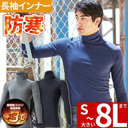 他の画像を見る 防寒インナー 長袖 ストレッチ 村上被服 鳳皇 HOOH タートルネックホットインナー 488 冬用 暖かい 低刺激コットン 吸湿発熱 カジュアル +3℃ 裏微起毛 消臭 UVカット シンプル 長袖インナー 優しい肌触り 大きいサイズ 特別価格 ¥ 1,980 税込 〜 特別価格 ¥ 税込 カジュアルからワークまでシーンを選ばない機能性スタイル 低刺激コットンの優しい肌触りと+3度の吸湿発熱で高い温度上昇を実現 詳細を見る お気に入りに登録する