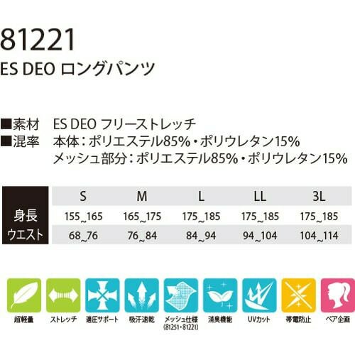 他の画像を見る 藤和 TS Design ES DEO ロングパンツ インナー タイツ スパッツ 81221 夏用 涼しい 暑さ対策 クール 2020年春夏新作 JIS T8118 コンプレッション 吸汗速乾 消臭 UVカット 帯電防止 メンズ 特別価格 ¥ 2,580 税込 〜 特別価格 ¥ 税込 臭いの根元を糸から断つ。制電性能に加え、TS独自開発の化学結合消臭素材を使用。 汗臭・アンモニア臭・加齢臭を徹底消臭。2時間で90%以上の消臭。洗濯後でも消臭性能を維持します。あらゆる動きに対応するフリーストレッチ素材。 詳細を見る お気に入りに登録する