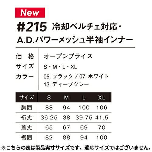 他の画像を見る [メール便対応]アイズフロンティア 夏用インナー 薄手 半袖 #215 メッシュ A.D. パワー メッシュ インナー メンズ 夏 接触冷感 UVカット 紫外線対策 日焼け対策 吸水 吸汗 速乾 I'Z FRONTIER アンダーシャツ 肌着 作業着 作業服 ゴルフ スポーツ コンプレッション 特別価格 ¥ 2,497 税込 弊社冷却ペルチェデバイス商品の機能を最大限に発揮される事を目的として開発された超爽快インナーウェアシャツ 脇、及び背面に、非常に薄く且つ隙間の多いパワーメッシュ素材を採用。一般基準を凌ぐ破裂強度(測定値352Kpa)を確保しつつ、限界まで爽快性を追求。より肌感覚に近い清涼感を発揮します。抗ピリング性 (5級)、抗スナッグ性 (4.5級)等高い強度も併せ持つ完成度の高い1着に仕上がっています。 詳細を見る お気に入りに登録する