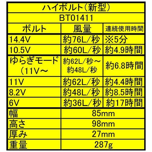 他の画像を見る EFウエア バッテリー 空調服 空調服バッテリーセット 14.4V用 BT01412 作業着 作業服 春夏 ファン 扇風機 空調服対応 特別価格 ¥ 11,550 税込 14.4Vターボモード搭載! カートに入れる お気に入りに登録する