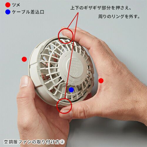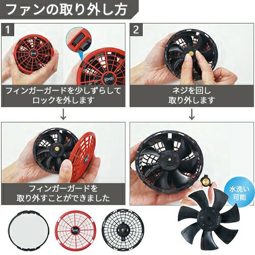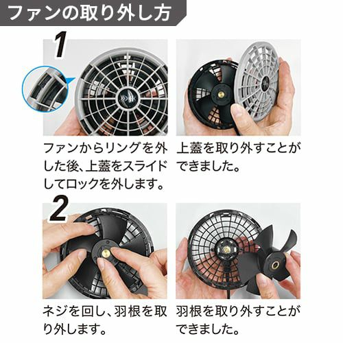 他の画像を見る EFウェア ファン サンエス 空調風神服 24V仕様ファンセット(ななめタイプ) 2024年モデル RD9410PH 作業着 作業服 春夏 扇風機 ファン付きウェア対応 特別価格 ¥ 6,930 税込 業界トップクラス 最大風量 約6.0m3/minファン登場!風向きを操れる「ななめファン」は空調風神服だけ! ■POINT1 業界トップクラスのファン登場■POINT2 2種類から選べるファンタイプ・風向きを変えられるななめ設計回転させて取り付けることにより胸方向や背中方向など必要に応じて気流を変えることができます。・ウェアから飛び出ないフラット設計ファンがウェア内に収まり飛び出さないので作業中にファンが支えるなどせず快適に使えます。■POINT3 アウターカバーを取り外せばプロペラ部分の清掃が可能 在庫切れ 再入荷お知らせ お気に入りに登録する