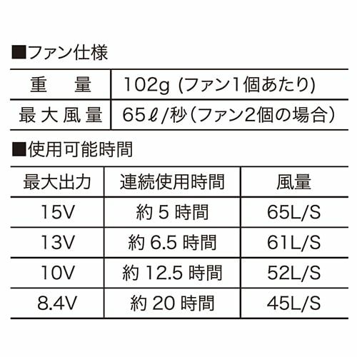 他の画像を見る 【即日出荷】G.B.Z 空調作業服 2025 ファンセット COVELL 最新 新作 作業着 85L ファン 8時間連続稼働 EFウェア 105L 作業服 春夏 猛暑 暑さ対策 強力 2025モデル かっこいい 熱中症対策 特別価格 ¥ 4,780 税込 12V稼働で最長16時間連続使用可能! 最大毎秒85リットルの風量を発揮 カートに入れる お気に入りに登録する
