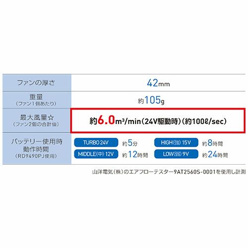 他の画像を見る EFウェア ファン サンエス 空調風神服 24Vファンセット 海外製2025年モデル RD9530H 作業着 作業服 春夏EFウェア ファン 特別価格 ¥ 5,940 税込 業界トップクラス 最大風量 約6.0m3/minファンが手に取りやすい価格で登場! 装着容易なスピンロックファンから業界トップクラスの大風量100L/sec! 在庫切れ 再入荷お知らせ お気に入りに登録する