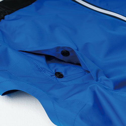 収納型ランヤードフックハンガー、サイドファン、シルクプリント、背中ランヤード取付Dカン用通し口、両脇ポケット(コードホール付)、反射テープ付(肩・背中・裾囲)、背中通気路、裾ずり上がり防止ループ