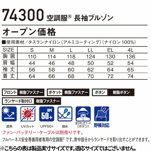 EFウェア 作業服 Z-DRAGON 空調服(R) 長袖ブルゾン(ファン無し)2025年モデル 74300 作業着 作業服 春夏 フルハーネス対応 サイドファン 電動ファン対応 扇風機 猛暑 酷暑 熱中症対策 撥水 涼しい 遮熱 UVカット 車 トラック 重機 フォークリフト 運転 フックハンガー ランヤード 着脱可能フード