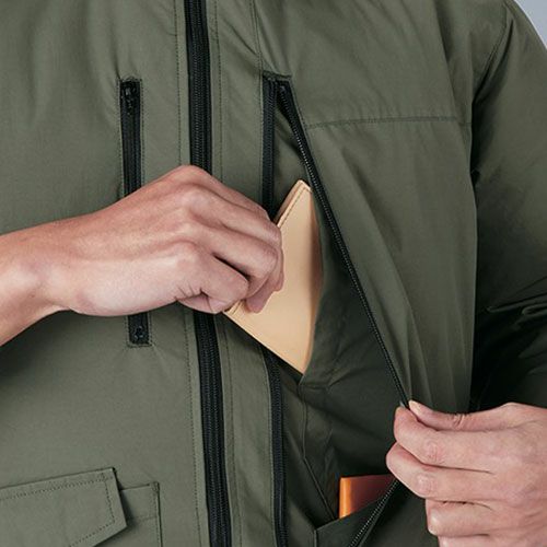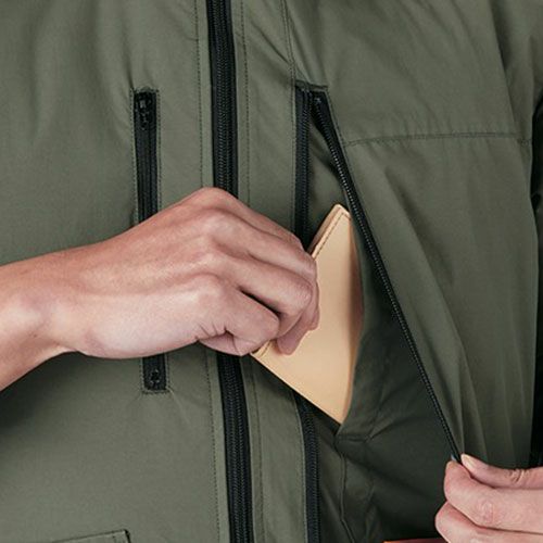 両脇ファン(サイドファン)配置とハーネス対応仕様をアーバンテイストのデザインに融合させストレスフリーな可動域を4WAYストレッチで実現した多様なワークシーンで活躍できるハイパフォーマンスウェア ●マットな風合いで抜群に動きやすい4WAYストレッチ●熱中症対策に配慮した実用的な3ヵ所の保冷剤ポケット●冷感×遮熱・UVカット素材に耐久撥水加工をプラス●04510SERIESのパンツとセットアップが可能