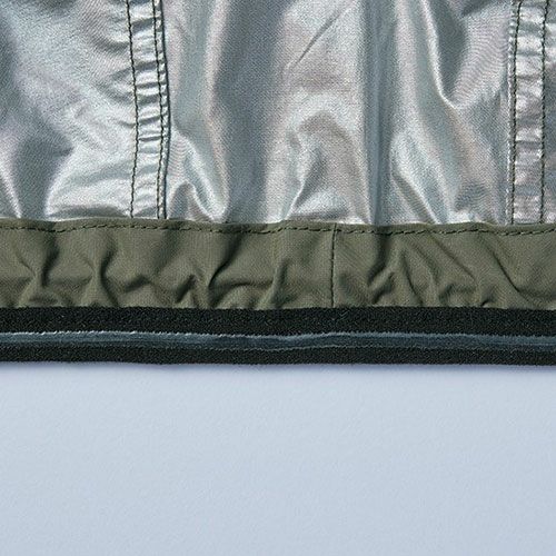 フルハーネスに対応したサイドファンタイプの空調服遮熱加工により未加工布と比較して-10℃を実感 ●車・重機の運転や椅子に座った時にファンが邪魔になりにくいサイドファンタイプ●軽量で耐久性のあるタスランナイロン素材で撥水機能も装備●裏アルミコーティングを施しUVカット、-10℃の遮熱効果を確保(未加工布比較)●周囲の音を聞こえやすくするフードパンチング仕様●フックハンガー、ランヤード取出し口を配備しフルハーネスに完全対応●ファン脱落を防止するメッシュポケットを配備●背中に保冷剤用メッシュポケット対き●着脱可能なフードを装備