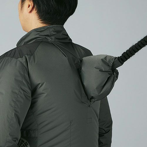 ミニマルなルックスとワークスペックの機能性を兼ね備えたスポーティなFAN装着プロダクト ●ワークギアの装着への順応性をもたらすハイバックファン取付設計モデル(HBシリーズ)●軽量、撥水性、アルミC加工による遮熱性(-8度)を備えたソフトシェル素材●背ヨークに保冷剤を収納可能な通気エアダクトポケットを装備●ヘルメット収納フード(着脱可能)、フックハンガー、背ランヤードホールを配備しフルハーネスに完全対応●男女ユニセックスの着用に対応
