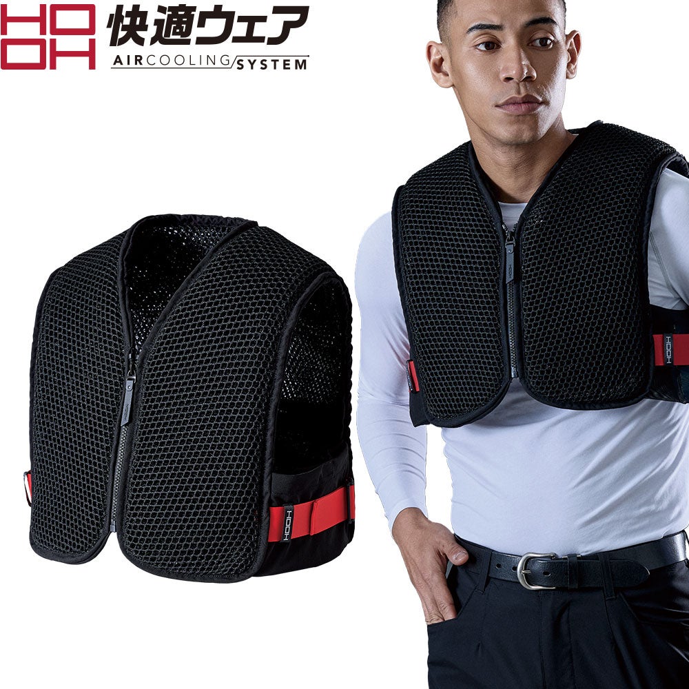 フルハーネスの重圧で潰れがちな衣服内の空間を、特殊な3Dメッシュが死守。快適ウェアの涼しさを損なわず、全身に風を届けます。