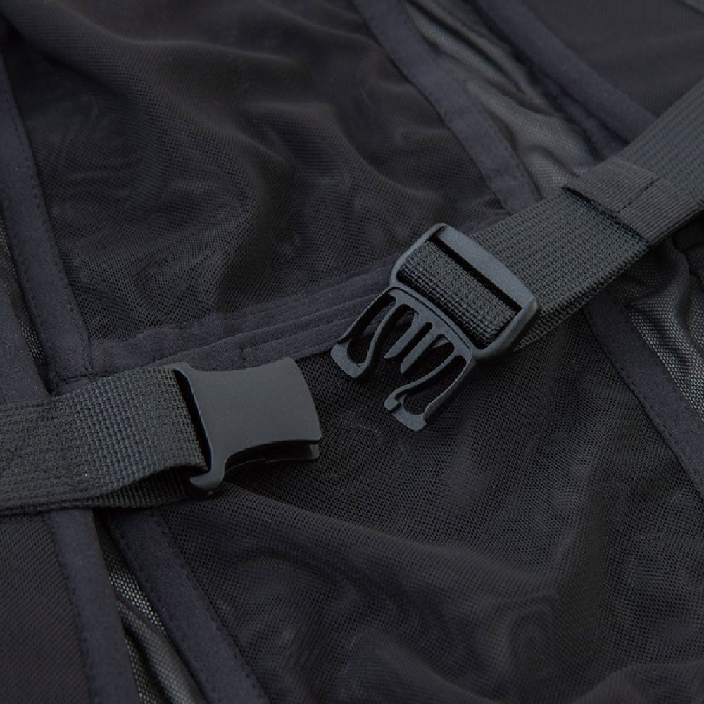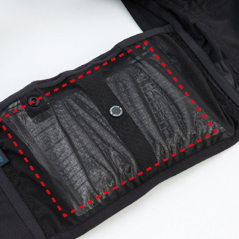 ●パワーメッシュ素材: ストレッチ性が高く身体にしっかりフィットし、保冷剤の重さによる負担も軽減。