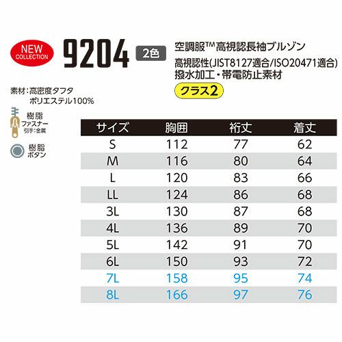 他の画像を見る EFウエア Asahicho 旭蝶繊維 空調服 高視認長袖ブルゾン 9204 作業着 作業服 春夏 JIST8127 ISO20471規格適合 特別価格 ¥ 7,117 税込 夜間や視認性の低い現場でもクールに安全に着用できます。 高輝度再帰性反射材を使用(胴周り、腕周り、肩部分)夜間の視認性を高める再帰性反射材(巾50mm)を使用。360度全方向からの視認性を実現。 詳細を見る お気に入りに登録する