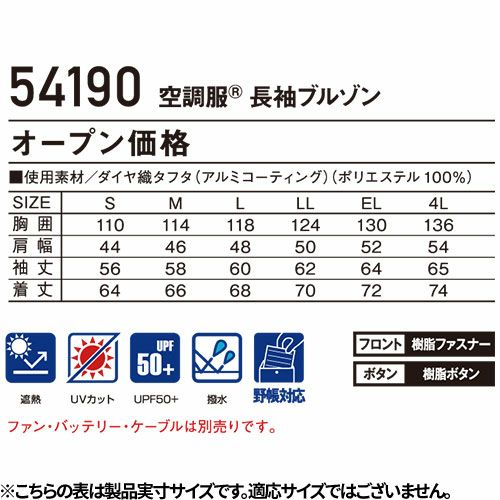 他の画像を見る サンエス 空調風神服 服のみ 涼しい 熱中症対策 空調風神服 チタン加工長袖ブルゾン(ファン無し) KF101 作業着 作業服 春夏 2020年春夏新作 UVカット 赤外線カット メンズ 特別価格 ¥ 6,017 税込 裏チタン加工で快適!紫外線・赤外線をカットするチタン加工!! ファン落下防止ネット付きなので、風神ベスト(インナースペーサー)を着用すればフルハーネス装着での衣服内を快適に保つことが可能です。腰よりも少し高めのファン位置が安全帯の腰ベルトの装着を妨げません。 詳細を見る お気に入りに登録する