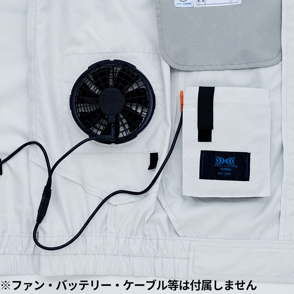 サトウキビ由来のエコ制電素材×サイドファン。腕まで保護できる空調服長袖ブルゾン。