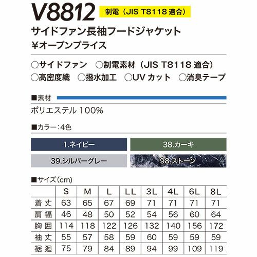 V2512 快適ウェア サイドファン長袖フードジャケット(ファン無し) 2025年モデル