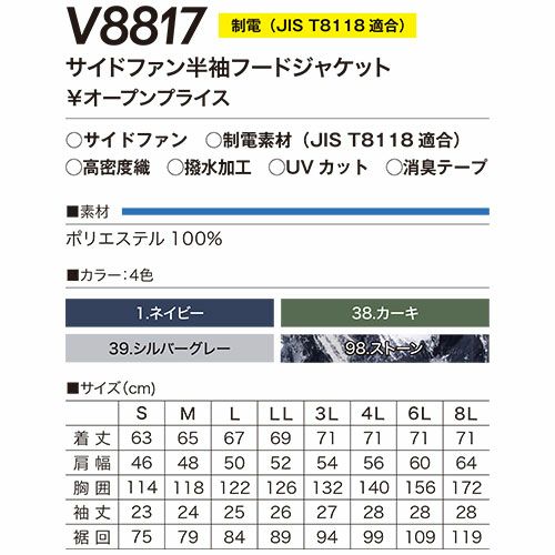 他の画像を見る EFウェア 半袖 村上被服 鳳皇 HOOH 快適ウェア サイドファン半袖フードジャケット 2023年モデル(ファン無し) V8817 作業着 作業服 春夏 扇風機 電動ファン 暑さ 熱中症対策 特別価格 ¥ 4,650 税込 〜 特別価格 ¥ 税込 夏の作業に欠かせない空調機能を取り入れたファン付き作業服の快適ウェア! サイドファンのフード付き長袖ジャケット。JIS T8118 静電気帯電防止適合!制電素材を使用し、ファスナー・ドットなどすべてプラスチック。フードの耳部分はコンプレッション素材で聞こえやすくムレない。フルハーネスに対応したデザイン。 詳細を見る お気に入りに登録する