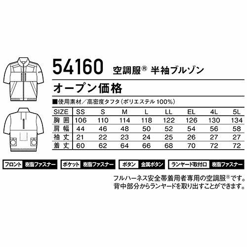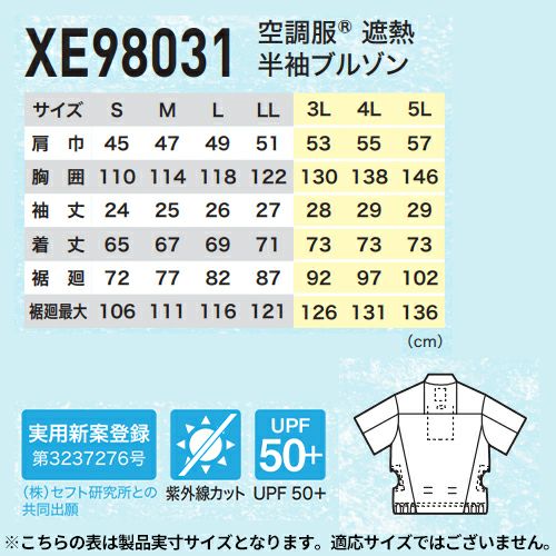 他の画像を見る EFウェア 半袖 ジーベック XEBEC 空調服(R)半袖ブルゾン(ファン無し)2025年モデル XE98032 作業着 作業服 春夏 猛暑 酷暑 熱中症対策 涼しい 電動ファン 扇風機 サイドファン 車 フォークリフト 運転 特別価格 ¥ 6,923 税込 マイナス2℃の遮熱 空調服 半袖タイプ 遮熱性のある機能素材が夏の厳しい日差しを軽減し衣服内温度マイナス2℃を実現する空調服●吸水速乾●透け防止●便利なサイドファン仕様 詳細を見る お気に入りに登録する